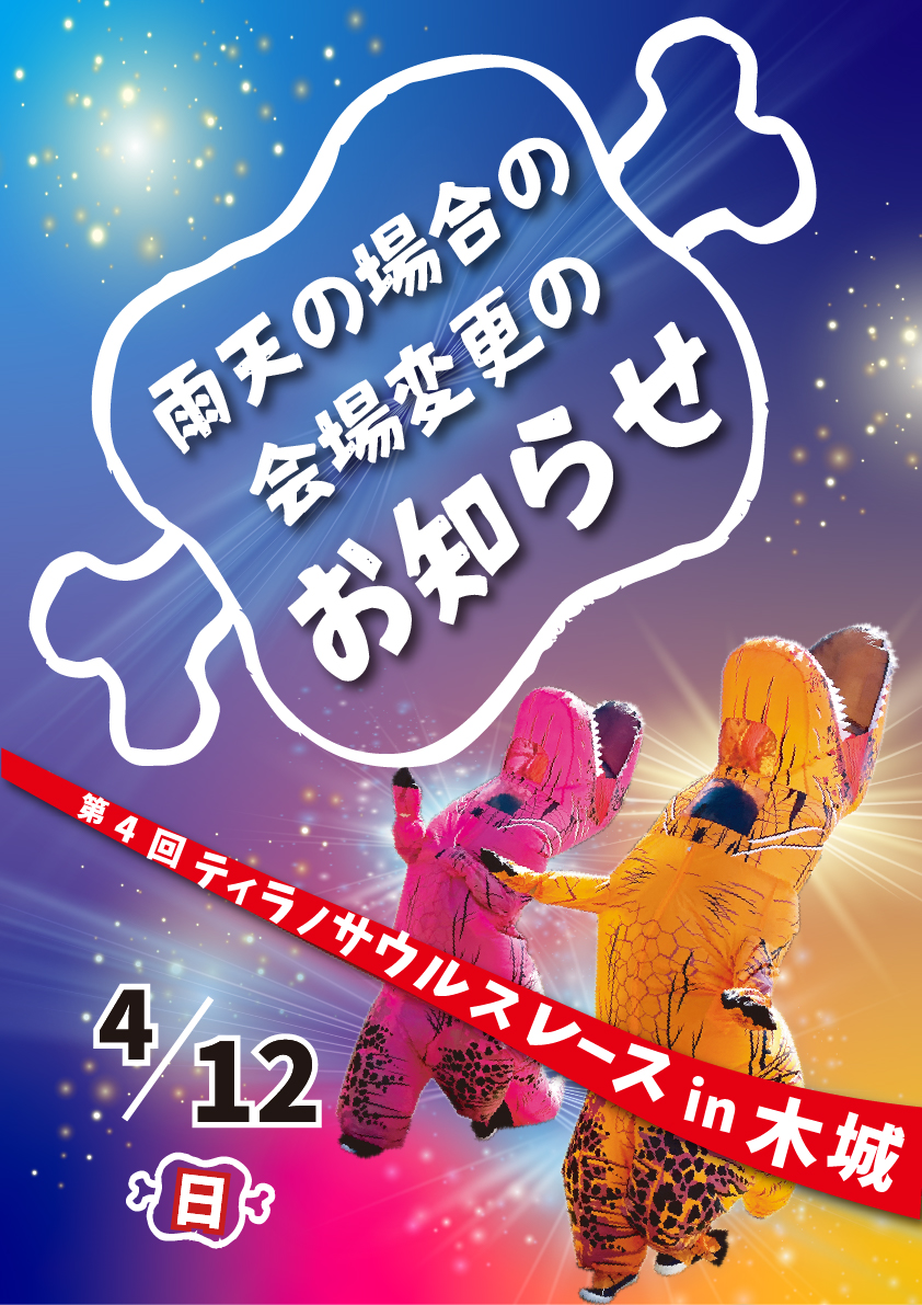 第4回ティラノサウルスレースin木城雨天中止の場合の会場変更のお知らせ